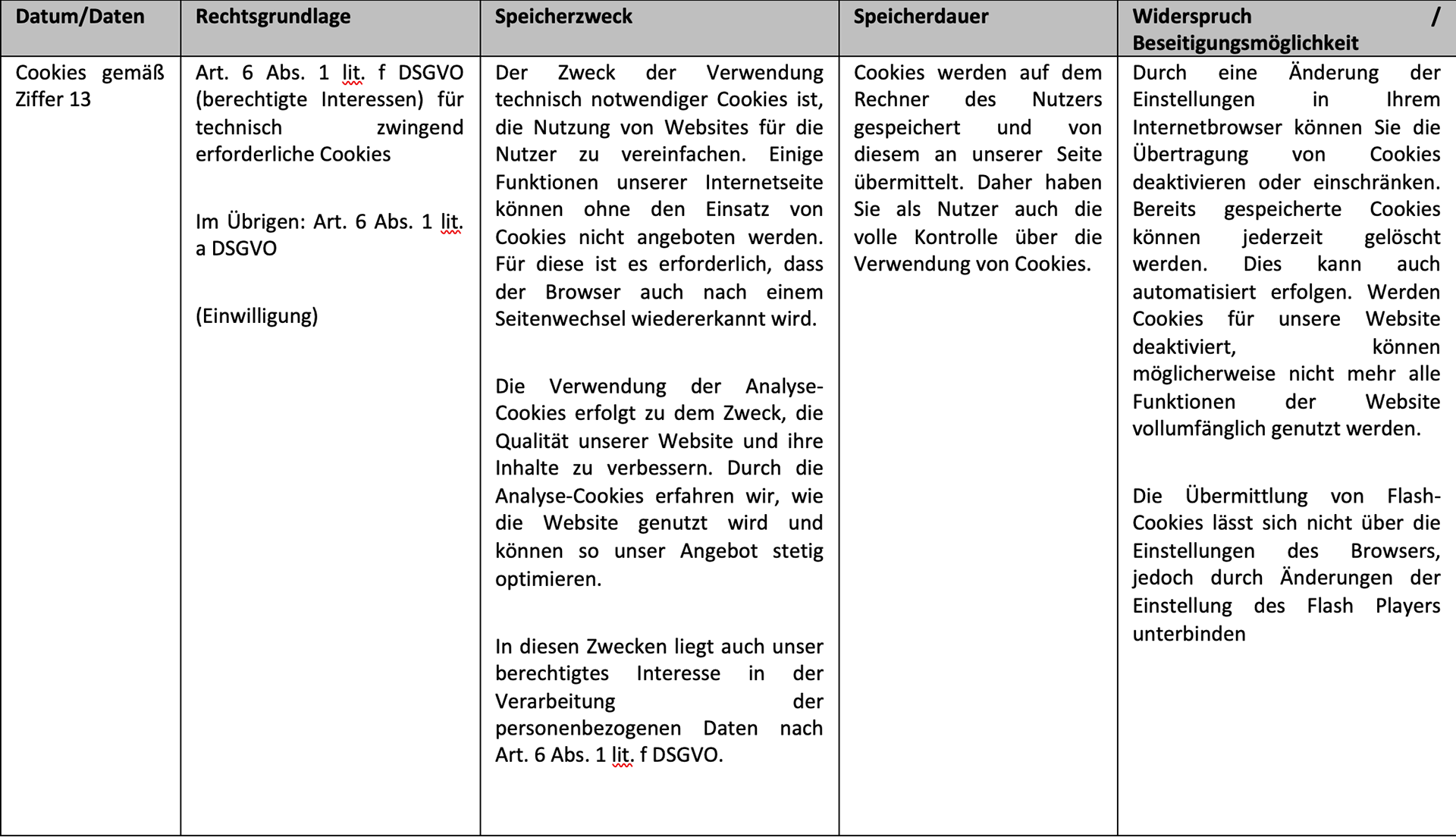 10. Rechtsgrundlagen, Zwecke der Verarbeitung, Dauer der Speicherung, Widerspruch und Beseitigungsmöglichkeit