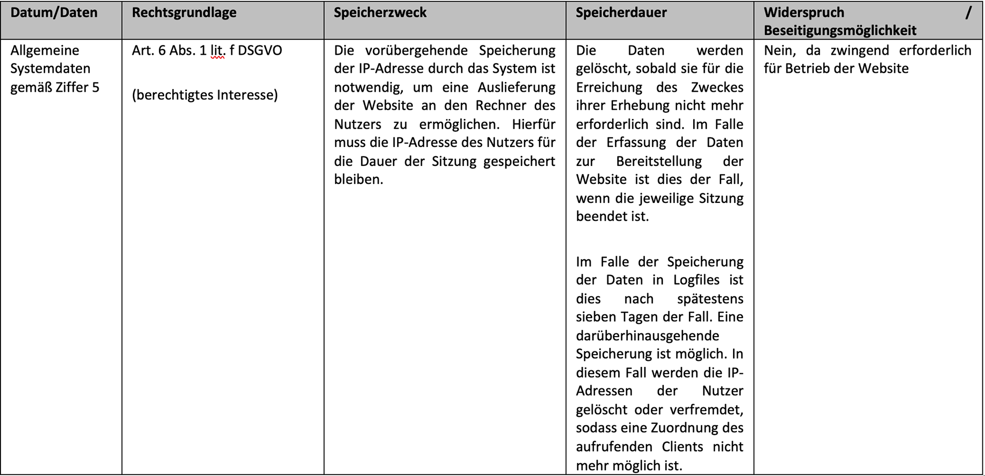 10.2 Allgemeine Angaben zur Datenlöschung und Speicherdauer